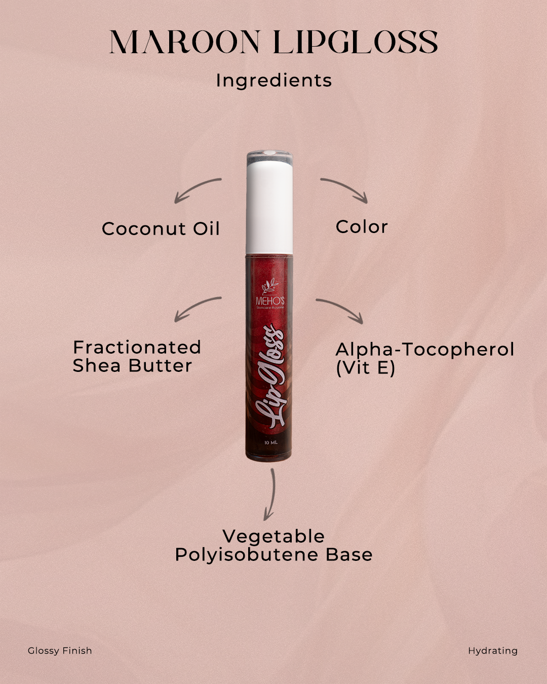 A rich maroon gloss that brings bold color, deep shine, and confident femininity to your lips.